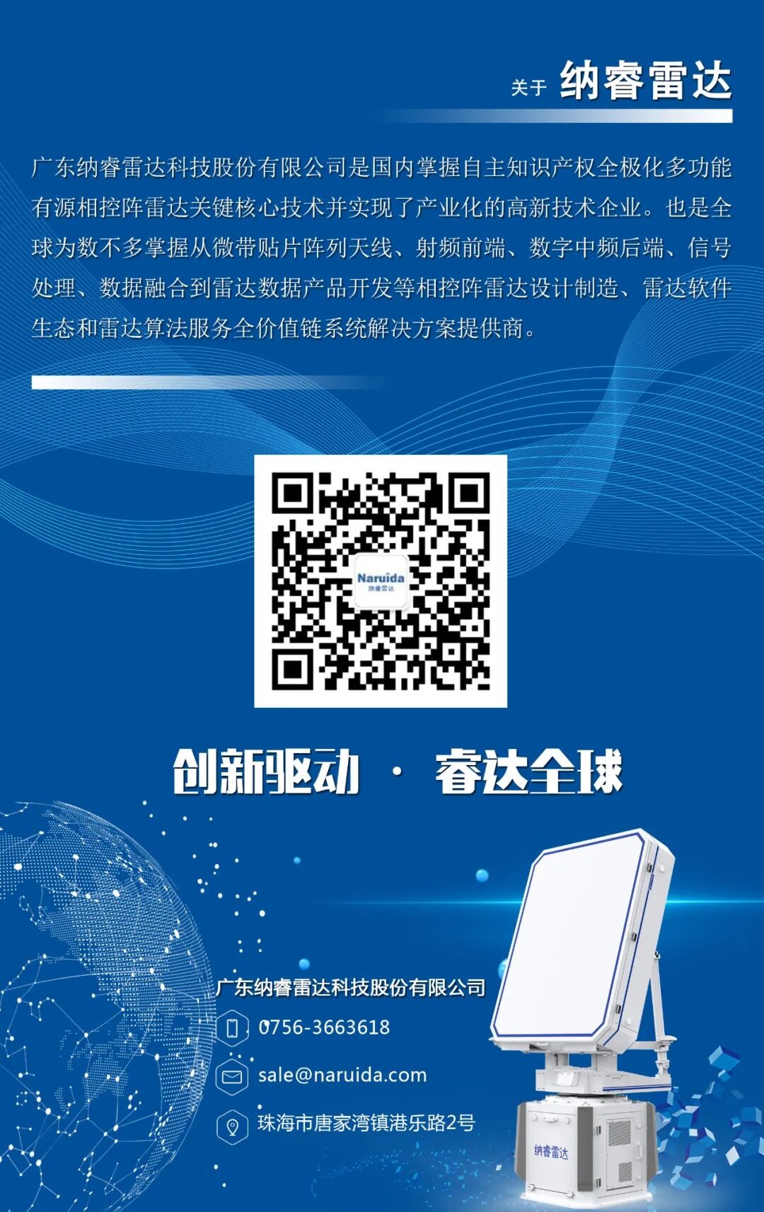作为一家以科技创新为驱动,专注于提供全极化有源相控阵雷达系统解决方案的提供商。纳睿雷达自创立以来,始终坚持走专业化、精细化、特色化、新颖化的发展道路。是国内掌握自主知识产权全极化多功能有源相控阵雷达关键核心技术,并实现了产业化的高新技术企业。