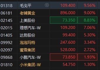 6月23日消息,港股新消费概念股午后走高。毛戈平、老铺黄金大涨9%,上美股份涨超8%配资在线炒股配资,泡泡玛特涨超3%。